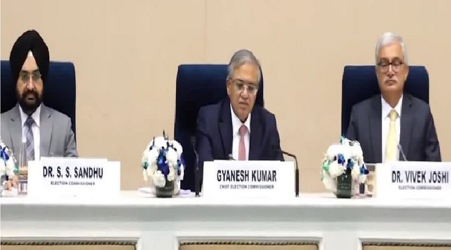 नई दिल्ली : भारत निर्वाचन आयोग ने आज असम, केरल, तमिलनाडु, पश्चिम बंगाल और पुडुचेरी में आगामी विधानसभा चुनावों का कार्यक्रम घोषित कर दिया है। मुख्य निर्वाचन आयुक्त ज्ञानेश कुमार, निर्वाचन आयुक्त सुखबीर सिंह संधू और विवेक जोशी ने विज्ञान भवन में आयोजित प्रेस कॉन्फ्रेंस में यह जानकारी साझा की।