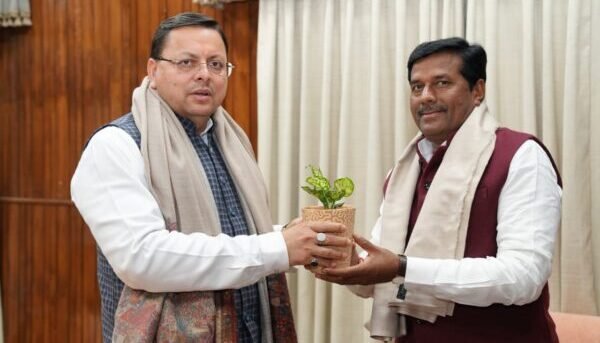 देहरादून : मुख्यमंत्री पुष्कर सिंह धामी से शनिवार को मुख्यमंत्री आवास में मध्य प्रदेश के पूर्व बागवानी और खाद्य प्रसंस्करण एवं नर्मदा घाटी विकास राज्य मंत्री भारत सिंह कुशवाह ने शिष्टाचार भेंट की।