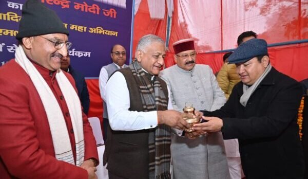 हरिद्वार : केन्द्रीय नागरिक विमानन सड़क परिवहन एवं राजमार्ग राज्य मंत्री जनरल(से.नि.) डॉ. वीके सिंह, पर्यटन मंत्री सतपाल महाराज, पूर्व मुख्यमंत्री उत्तराखण्ड, पूर्व केन्द्रीय शिक्षा मंत्री एवं सांसद हरिद्वार डॉ. रमेश पोखरियाल निशंक ने सोमवार को प्रधानमंत्री जनजाति आदिवासी न्याय अभियान(पीएम जनमन) योजनान्तर्गत बहादराबाद ब्लाक में आयोजित मेगा इवेंट में प्रतिभाग किया, जिसमें प्रधानमंत्री नरेन्द्र मोदी ने वर्चुअल माध्यम से जनजाति आदिवासी लाभार्थियों से संवाद स्थापित किया। प्रधानमंत्री नरेन्द्र मोदी ने इस मौके पर एक लाख जनजातिय लाभार्थियों को पक्के घर बनाने के लिये डीबीटी के माध्यम से सीधे खाते में धनराशि ट्रांसफर की।