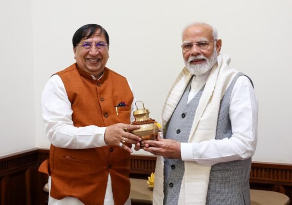 नई दिल्ली : भारतीय जानता पार्टी के राष्ट्रीय सह-कोषाध्यक्ष व सासंद राज्यसभा डॉ. नरेश बंसल ने प्रधानमंत्री नरेंद्र मोदी से शिष्टाचार भेंट की व विभिन्न समसामयिक विषयो पर चर्चा की। डॉ. नरेश बंसल आज सुबह पूर्व निर्धारित कार्यक्रम के तहत प्रधानमंत्री नरेंद्र मोदी से मिलने पहुंचे । इस मौके पर डॉ. नरेश बंसल ने प्रधानमंत्री मोदी को आज हथकरघा दिवस पर उत्तराखंड के कारीगरो द्वारा निर्मित “हिमाद्री” का बना शाल व सावन के पवित्र माह मे मां गंगा के जल से भरी गंगाजली एवं भगवान शिव की प्रिय रुद्राक्ष की माला भेंट की । डॉ. नरेश बंसल ने तीज के त्यौहार व स्वर्णिम इतिहास बनाते हुए लगातार तीसरी बार प्रधानमंत्री शपथ लेने एवं एनडीए की सरकार बनने की हार्दिक शुभकामनाए व बधाई प्रेषित की।