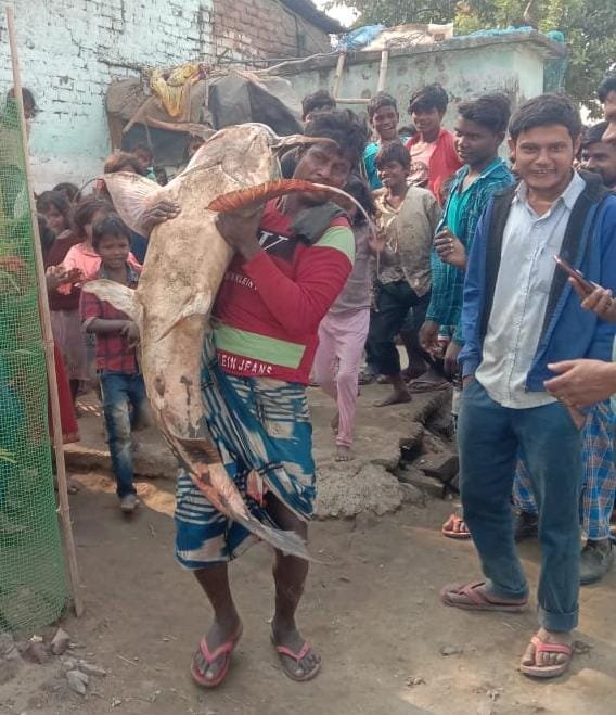 भागलपुर : भागलपुर के नाथनगर प्रखंड क्षेत्र के रामपुर खुर्द पंचायत के मुसहरी घाट में रविवार दोपहर एक पांच फीट की बगार मछली मिलने से पूरे इलाके में चर्चा का विषय बन गया। दूर दराज से लोग मछली को देखने के लिए पहुंचने लगे है। ग्रामीण महिपाल सिंह, अश्वनी मित्रा, अमरेंद्र सिंह, मुकेश कुमार, टिंकू, विकास ने बताया कि इस तरह की मछली की प्रजाति मिलना एक सुखद अनुभूति को बढ़ावा देना है। तकरीबन दो घंटे तक मछली जीवित रही। उक्त मछली को पकड़ने के लिए कई लोग कई दिनों से प्रयासरत थे लेकिन वजन करीब 30 किलो होने की वजह से मछली पकड़ में नही आ रही थी। छोटी मछलियां भी घाट में कम दिखाई दे रही थी।