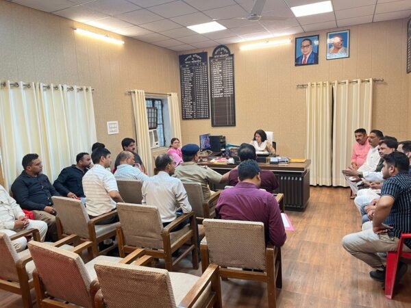 हरिद्वार : नगर मजिस्ट्रेट हरिद्वार कुश्म चौहान की अध्यक्षता में कार्यालय नगर मजिस्ट्रेट, हरिद्वार में पुलिस विभाग, नगर निगम, पीडब्लूडी विभाग के अधिकारियों तथा व्यापार मण्डल के पदाधिकारियों के साथ देवपुरा चौक से अपर रोड, हर की पैडी, सुभाषघाट, भीमगोड़ा क्षेत्रों से स्थाई/अस्थाई अतिक्रमण हटाये जाने के सम्बन्ध में बैठक आहूत की गयी।