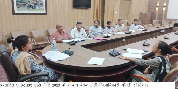 देहरादून : जिलाधिकारी सोनिका की अध्यक्षता में प्रस्तावित एम0एस0एम0ई0 नीति 2023 के सम्बन्ध बैठक आयेाजित करते हुए विभिन्न उद्योग संघो से सुझाव प्राप्त किये गए। जिलाधिकारी ने कहा कि राज्य में नये उद्योग के साथ ही पुराने उद्योग भी स्थापित रहे इसके लिए प्रभावी नीति तैयार करने हेतु सुझाव प्राप्त किये जा रहे। उन्होंने महाप्रबन्धक जिला उद्योग केन्द को निर्देशित किया कि उद्योग संघो के प्रतिनिधियों एवं उद्योगपतियों द्वारा दिए गए सुझावों को संकलित करते हुए शासन को प्रेषित करें।