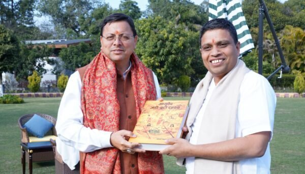 देहरादून : मुख्यमंत्री पुष्कर सिंह धामी से रविवार को मुख्यमंत्री आवास में पतंजलि योगपीठ के संस्थापक आचार्य बालकृष्ण ने शिष्टाचार भेंट की। उन्होंने मुख्यमंत्री को आयुर्वेद जड़ी-बूटी रहस्य से संबंधित पुस्तक भी भेंट की।