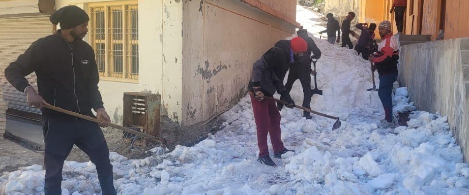 बदरीनाथ धाम में नगर पंचायत की एडवांस टीम शुरू किया बर्फ हटाना