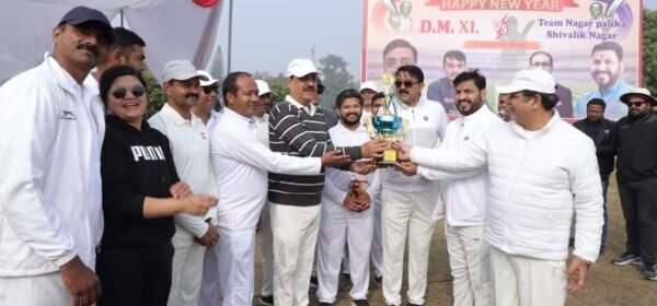 हरिद्वार : नववर्ष आगमन के स्वागत में रानीपुर भेल स्थित डी.पी.एस. कॉलेज में शनिवार को डी.एम. ईलेवन वर्सेज टीम नगर पालिका शिवालिक नगर के बीच मैत्री क्रिकेट मैच का आयोजन किया गया। जिलाधिकारी विनय शंकर पांडेय, वरिष्ठ पुलिस अधीक्षक अजय सिंह, मुख्य विकास अधिकारी प्रतीक जैन, नगर पालिका अध्यक्ष राजीव शर्मा आदि ने शानदार क्रिकेट का प्रदर्शन किया l इस मौके पर जिलाधिकारी विनय शंकर पांडेय ने कहा कि खेलों से स्वस्थ मनोरंजन होने के साथ ही जीवन में एक नये उत्साह का संचार भी होता हैl उन्होंने कहा कि इस तरह के आयोजन समय- समय पर होते रहने चाहिए। इस मौके पर उन्होंने मेमोरियल ट्राफी भी प्रदान की l