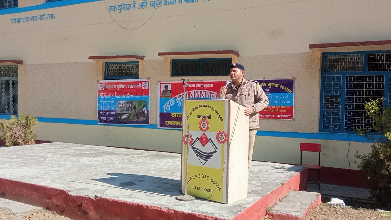 उत्तरकाशी (कीर्तिनिधि सजवाण): यातायात निदेशालय,उत्तराखण्ड के निदेशानुसार एवं अर्पण यदुवंशी पुलिस अधीक्षक उत्तरकाशी के दिशा-निर्देशन में 11 जनवरी 2023 से चलाये जा रहे “सड़क सुरक्षा सप्ताह”के अन्तर्गत आज छठवें दिन प्रशान्त कुमार सी0ओ0(ऑप्स)/यातायात के पर्यवेक्षण एवं यातायात निरीक्षक राजेन्द्र नाथ एवं उ0नि0 राजेन्द्र पुजारा चौकी प्रभारी डुण्डा के नेतृत्व में यातायात एवं चौकी पुलिस द्वारा संयुक्त रुप से स्व0 लाखी राम सिंह सजवाण इण्टर कॉलेज डुण्डा में जनजारुकता कार्यक्रम का आयोजन किया गया। इस दौरान उनके द्वारा सभी छात्र/छात्राओं को यातायात नियमों की विस्तृत जानकारी देकर यातायात नियमों के प्रति जागरुक किया गया। पुलिस द्वारा “पहाड़ी मार्गों पर सड़क दुर्घटना के कारण एवं उन्हें रोकने के उपाय” विषय पर निबंध प्रतियोगिता भी कराई गई। इसके अतिरिक्त आज यातायात पुलिस उत्तरकाशी एवं परिवहन विभाग की संयुक्त टीम द्वारा टैक्सी स्टैण्ड भटवाडी उत्तरकाशी में मेडिकल कैम्प का आयोजन कर वाहन चालकों के नेत्र परिक्षण करवाए गये।