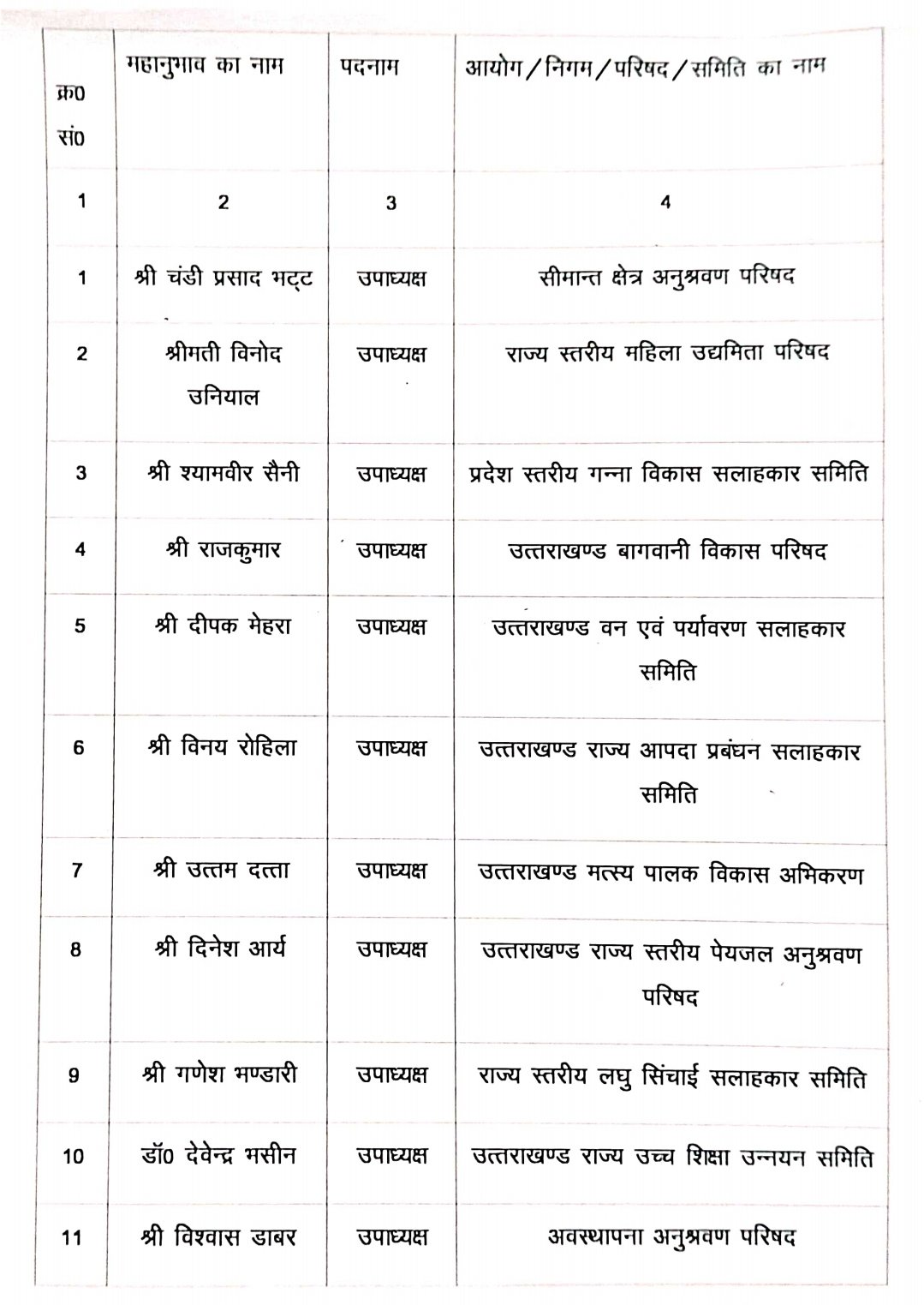 उत्तराखंड: दायित्वधारियों की एक और लिस्ट जारी, इनको मिली जिम्मेदारी