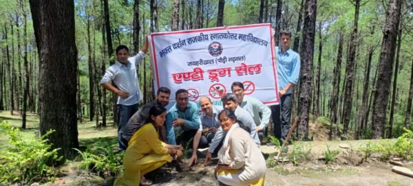 एंटी ड्रग सेल के नोडल डॉ. वीके सैनी द्वारा बताया गया कि नशा मुक्त भारत के अभियान का उद्देश्य जनता तक पहुंचना और विभिन्न गतिविधियों के माध्यम से मादक द्रव्यों के सेवन के बारे में जागरूकता फैलाना है।नशा मुक्त उत्तराखण्ड बनाने के लिए हमें बुरी आदतों को त्यागना होगा, प्रकृति ने हमें बहुत कुछ दिया है इससे प्रेम करें, वृक्षारोपण कर अपनी निर्मल पावन भूमि को उपजाऊ और संरक्षित करने का संकल्प लें। इस अवसर पर महाविद्यालय के विज्ञान संकाय के नोडल अधिकारी डॉ. प्रीति रावत, डॉ. सुभम काला, कला संकाय के नोडल डॉ. वन्दना बहुगुणा, डॉ. भगवती प्रसाद पंत, वाणिज्य संकाय के नोडल डॉ. वरुण कुमार, NCC प्रभारी डॉ. पंकज कुमार, B.Ed विभागाध्यक्ष डॉ. आरके सिंह, वरिष्ठ प्रशासनिक अधिकारी राजीव रजवार के साथ ही समस्त प्राध्यापक एवं शिक्षणेत्तर कर्मचारीगण उपस्थित रहे।