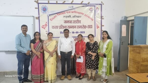 रूडकी : जिला शिक्षा एवं प्रशिक्षण संस्थान रुड़की में जनपद स्तरीय कला प्रतिभा सम्मान समारोह का आयोजन हुआ इस हेतु संस्थान में जनपद से आए चयनित शिक्षकों एवं विद्यार्थियों ने प्रतिभाग किया समारोह का उद्घाटन प्रभारी प्राचार्य नरेंद्र सिंह वालिया के द्वारा किया गया कार्यक्रम समन्वयक श्री वैष्णो कुमार ने बताया कि जनपद में शिक्षकों को कला की दो विधाओं लोक चित्रकला एवं लघु चित्रकला में ऑनलाइन प्रतिभाग करना था। विद्यार्थियों के दो ग्रुप बनाए गए थे कक्षा 6 से 8 एवं कक्षा 9 से 12 इनको पोस्टर चित्रांकन एवं मुखौटा प्रतियोगिता में ऑनलाइन प्रतिभाग करना था। विकासखंड स्तर पर चयनित शिक्षकों एवं विद्यार्थियों का सम्मान करने तथा ऑफलाइन प्रतियोगिता के माध्यम से इन विधाओं में शिक्षकों एवं विद्यार्थियों का जनपद स्तर पर चयन किया गया।