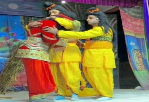 कोटद्वार। श्री रामलीला कमेटी दुगड्डा की ओर से दुगड्डा में आयोजित रामलीला के सप्तम दिवस गुरुवार को भरत राम मिलन लीला का मंचन किया गया। लीला का आरंभ अमित अग्रवाल व अन्य अतिथियों ने संयुक्त रूप से दीप प्रज्ज्वलित कर किया।लीला का आरंभ जग में सुंदर हैं दो नाम, चाहे कृष्ण कहो या राम भजन साथ किया गया। तत्पश्चात महाराज दशरथ द्वारा राम के वन जाने पर विलाप करना, राम के वियोग में राजा दशरथ द्वारा प्राण त्यागना, कैकई- भरत संवाद, भरत का राम को वन से वापस लेने के लिए प्रस्थान करना, भरत द्वारा श्री राम को अयोध्या वापस चलने के लिए कहना और राम का मना करना और भरत द्वारा उनकी चरण पादुका लेकर अयोध्या वापस आने तक की लीला का मंचन किया गया। लीला के संचालन में नितेश ठाकुर, संजीव कोटनाला, प्रदीप बडोला और राहुल जैन ने भी सहयोग दिया।