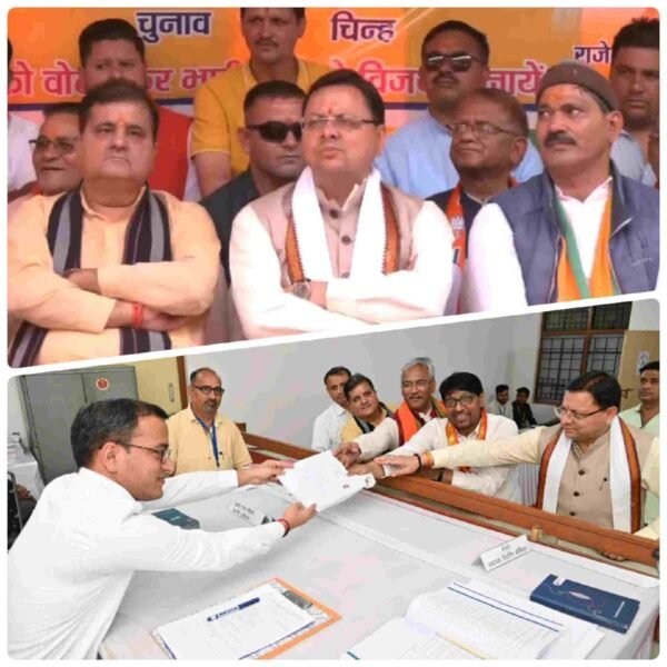 देहरादून। उत्तराखंड की दो विधानसभा सीटों पर हो रहे उपचुनाव को लेकर नामांकन की प्रक्रिया जारी है,वहीं भाजपा के दोनों उम्मीदवारों के द्वारा आज अपना नामांकन किया गया है,मुख्यमंत्री पुष्कर सिंह धामी और भाजपा प्रदेश अध्यक्ष महेंद्र भट्ट दोनों उम्मीदवारों के नामांकन में मौजूद रहे।