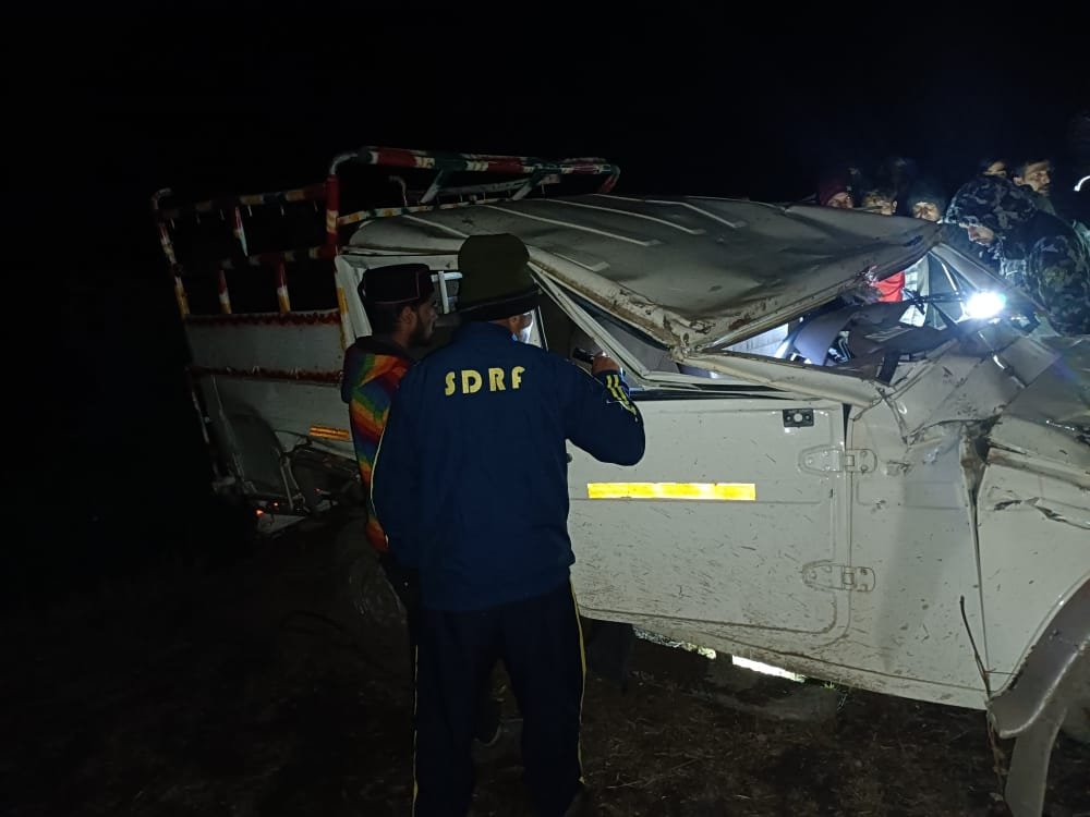 उत्तरकाशी : जनपद उत्तरकाशी के फितारी काफला में बोलेरो वाहन हुआ दुर्घटनाग्रस्त, 03 घायल, एक की मौत, SDRF ने किया रेस्क्यू। 12 नवंबर 2022 को देर रात जनपद उत्तरकाशी के मोरी क्षेत्रान्तर्गत फितारी काफला में एक बोलेरो कैंपर (UK07 TB 9701) के दुर्घटनाग्रस्त होने की सूचना SDRF को प्राप्त हुई। उक्त सूचना पर पोस्ट मोरी में व्यवस्थापित SDRF टीम आरक्षी बलवंत सिंह के हमराह तत्काल मय रेस्क्यू उपकरणों के घटनास्थल के लिए रवाना हुई। उक्त वाहन अनियंत्रित होने से पलट गया था जिसमे चालक सहित 04 लोग सवार थे। चालक की मौके पर ही मृत्यु हो गयी थी व अन्य 03 लोग सामान्य घायल थे जिन्हें अस्पताल पहुँचा दिया गया था। SDRF टीम द्वारा मोके पर पहुँचकर कड़ी मशक्कत करते हुए घटना में मृत व्यक्ति विजय कुमार पुत्र भद्रजीत, निवासी सिंदरी, उम्र 37 वर्ष के शव को निकालकर अग्रिम कार्यवाही हेतु राजस्व पुलिस के सुपुर्द किया गया।