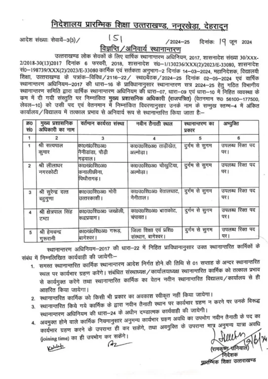उत्तराखंड : शिक्षा विभाग में बंपर स्थानान्तरण, आदेश जारी, यहां देखें पूरी लिस्ट by June 20, 2024 June 20, 2024 52 देहरादून : शिक्षा विभाग में बड़े स्तर पर तबादले हुए हैं। इनमें सुगम में डटे शिक्षकों को दुर्गम में भेजा गया है। अंतर मंडलीय स्थानांतरण भी किए गए हैं। देखें पूरी लिस्ट… previous post केदारनाथ धाम में श्रद्धालुओं के लिए बढ़ाई गईं चिकित्सा सुविधाएं next post इंदिरा मार्केट प्रोजेक्ट का मंत्री प्रेमचंद अग्रवाल ने किया निरीक्षण, 10 मंजिला इमारत में बनेंगी 564 दुकानें, 3 हजार से ज्यादा वाहनों की होगी पार्किंग Related Posts सीएम धामी का माणा दौरा, महिला सशक्तिकरण और... April 23, 2026 कुंभ मेला 2027 को दिव्य, भव्य और सुव्यवस्थित... April 23, 2026 मुख्यमंत्री पुष्कर सिंह धामी के निर्देशों पर स्वास्थ्य... April 23, 2026 सीवरेज कार्यों के लिए शहर में खोदी गई... April 23, 2026 अपर रोड, मां मनसा देवी उड़न खटोला आधी... April 23, 2026 देवभूमि में मर्यादा का पालन करें श्रद्धालु –... April 23, 2026