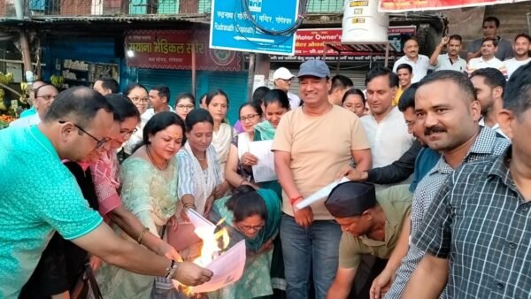 चमोली : पुरानी पेंशन बहाली की मांग को शिक्षक कर्मचारियों ने जलाई एनपीएस शासनादेश की प्रतिया