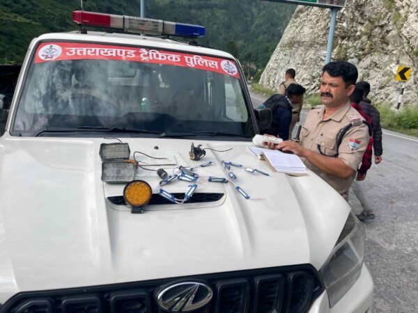 चमोली : यातायात पुलिस ने निजी वाहनों पर लाल – नीली बत्ती लगाने वालों पर कसा शिकंजा