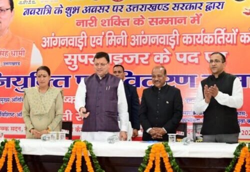देहरादून : मुख्यमंत्री पुष्कर सिंह धामी ने रविवार को मुख्य सेवक सदन, मुख्यमंत्री आवास, देहरादून में आयोजित कार्यक्रम में प्रतिभाग करते हुए प्रदेश की 167 आंगनवाड़ी एवं मिनी आंगनवाड़ी कार्यकर्तियों को सुपरवाइजर के पद पर नियुक्त होने पर नियुक्ति पत्र वितरित किए। इस अवसर पर उन्होंने नन्दा गौरा योजना एवं मुख्यमंत्री महालक्ष्मी किट योजना के ऑनलाइन पोर्टल का शुभारंभ भी किया।
