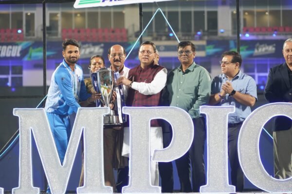 देहरादून : मुख्यमंत्री पुष्कर सिंह धामी ने रविवार को राजीव गांधी अन्तर्राष्ट्रीय क्रिकेट स्टेडियम रायपुर में क्रिकेट एशोसिएसन ऑफ उत्तराखण्ड के तत्वावधान में आयोजित हो रहे उत्तराखण्ड प्रिमियर लीग के फाइनल मैच में प्रतिभाग कर उत्तराखण्ड प्रिमियर लीग में विजय प्राप्त करने वाली यू.एस.एन इंडियन टीम को ट्रॉफी देकर सम्मानित किया। मुख्यमंत्री ने प्रिमियर लीग में प्रतिभाग करने वाले सभी खिलाडियों और विभिन्न जिलों की टीम को शुभकामनाएं देते हुए कहा कि उत्तराखण्ड प्रीमियर लीग जैसे प्रतियोगिताओं से हमारे प्रदेश के खिलाड़ियों को एक नया अवसर मिला है। सभी खिलाड़ियों ने इस प्रतियोगिता में अपना सर्वश्रेष्ठ प्रदर्शन किया।