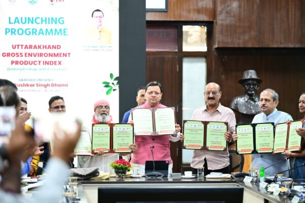 देहरादून : मुख्यमंत्री पुष्कर सिंह धामी ने शुक्रवार को सचिवालय में पारिस्थितिकी को अर्थव्यवस्था से जोड़ने के लिए ‘‘उत्तराखण्ड सकल पर्यावरण उत्पाद सूचकांक’’ (जी.ई.पी) लॉच किया। जी.ई.पी का शुभारम्भ करने वाला उत्तराखण्ड पहला राज्य है। उत्तराखण्ड सकल पर्यावरण उत्पाद सूचकांक का आंकलन 04 मुख्य घटकों जल, वायु, वन और मृदा के आधार पर किया गया है। मुख्यमंत्री ने कहा कि जी.ई.पी के प्रभावी क्रियान्वयन के लिए एक प्रकोष्ठ बनाया जायेगा।