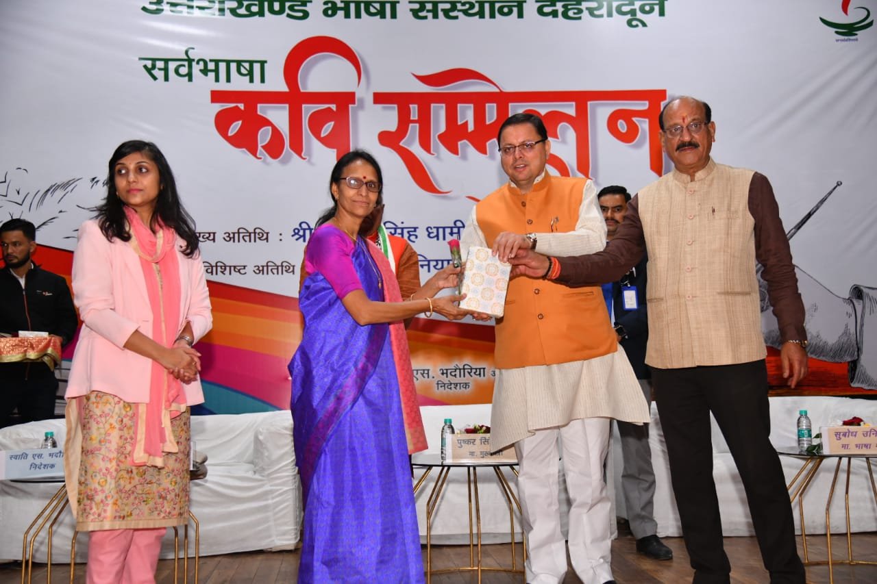 देहरादून : मुख्यमंत्री पुष्कर सिंह धामी ने कविता को आत्मा की अभिव्यक्ति तथा दिल से निकली आवाज बताते हुए कहा कि जिसका दिल साफ होगा मन में दया होगी, पीड़ा होगी, वही कविता लिख सकता है। उन्होंने कहा कि राज्य स्थापना के बाद पहली बार भाषा विभाग द्वारा सर्वभाषा कवि सम्मेलन का आयोजन सराहनीय पहल है। मुख्यमंत्री ने कवि सम्मेलन में पधारे कवियों को सम्मानित करते हुए कहा कि कवियों के बारे में कहावत है कि जहां न पहुंचे रवि वहां पहुंचे कवि। यही नहीं साहित्य, संगीत एवं कला से विहीन व्यक्ति को पशु के समान माना गया है। हमारे कवि समाज के पथ प्रदर्शक होते हैं। मुख्यमंत्री ने राज्य आन्दोलनकारियों को नमन करते हुए सभी को राज्य स्थापना की भी बधाई दी। उन्होंने कहा कि विविधता में एकता हमारी पहचान है।
