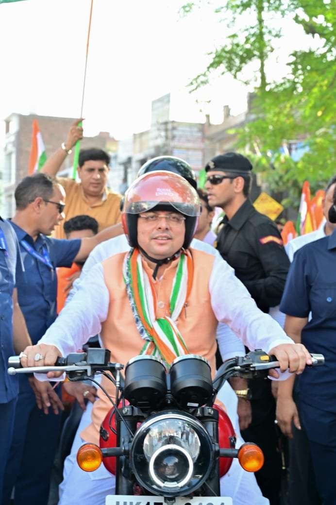 रुड़की : मुख्यमंत्री पुष्कर सिंह धामी मंगलवार को रुड़की में आयोजित तिरंगा बाइक रैली में शामिल हुए। मुख्यमंत्री ने स्वयं बाइक चलाकर रैली की शुरुआत की। सैकड़ो की संख्या में बाईकों पर लोग इस तिरंगा यात्रा में शामिल हुए।