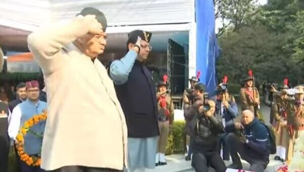 देहरादून : विजय दिवस के मौके पर मुख्यमंत्री पुष्कर सिंह धामी ने गांधी पार्क स्थित शहीद स्मारक में पहुंचकर शहीद जवानों को श्रद्धांजलि दी। इस दौरान उनके साथ सैनिक कल्याण मंत्री गणेश जोशी भी मौजूद रहे। बता दें हर साल की तरह 16 दिसंबर को विजय दिवस मनाया जाता है। सीएम धामी ने विजय दिवस के मौके पर गांधी पार्क में स्थित शहीद स्मारक में पहुंचकर शहीद जवानों को श्रद्धांजलि दी। बता दें सीएम धामी आज शहीदों के परिजनों को भी सम्मानित करेंगे। 1971 की ऐतिहासिक जीत की खुशी आज भी हर देशवासी के मन को उमंग से भर देती है। इस दिन को याद कर हम लोग विजय दिवस के रूप में मनाते हैं। यह वही दिन है जब भारत ने पाकिस्तान के दांत खट्टे किए थे। आज का दिन सैनिकों के शौर्य को सलाम करने का दिन है।