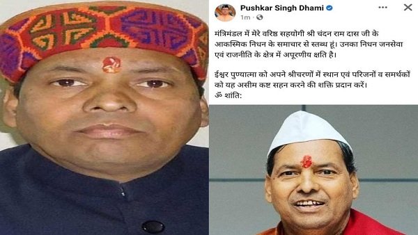 देहरादून : मुख्यमंत्री पुष्कर सिंह धामी ने कैबिनेट मंत्री श्री चंदन रामदास के निधन पर गहरा दुःख व्यक्त किया है। मुख्यमंत्री ने कहा मंत्रिमंडल में हमारे वरिष्ठ साथी श्री चंदन रामदास जी का निधन पूरे प्रदेश के लिए अपूरणीय क्षति है। स्व. चन्दन रामदास ने समाज में गरीबों, शोषितों, पिछड़ों के लिए और आम आदमी की भलाई के लिए संपूर्ण जीवन कार्य किया तथा हमेशा समाज के अंतिम छोर में खड़े लोगों की आवाज को उठाने और समाधान की ओर ले जाने का कार्य किया। उनका सरल, सहज एवं मृदुभाषी व्यक्तित्व था। मुख्यमंत्री ने दिवंगत आत्मा को सभी प्रदेशवासियों की ओर से श्रद्धांजलि देते हुए उनके परिजनों एवं शुभचिंतकों को दुःख की इस घड़ी में धैर्य प्रदान करने की ईश्वर से कामना की है। मुख्यमंत्री गुरूवार को स्व. चंदन रामदास की अंत्येष्टी में शामिल होने बागेश्वर जायेंगे तथा स्व. चन्दन रामदास को श्रद्धांजलि अर्पित करने के साथ उनके शोकाकुल परिजनों से भेंट कर उन्हें सांत्वना प्रदान करेंगे।