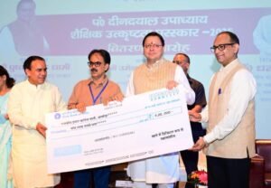 देहरादून। मुख्यमंत्री पुष्कर सिंह धामी ने गुरुवार को नानूरखेड़ा स्थित एससीईआरटी ऑडिटोरियम में आयोजित पंडित दीनदयाल उपाध्याय शैक्षिक उत्कृष्टता पुरस्कार समारोह में बोर्ड परीक्षाओं में शीर्ष 10 स्थान प्राप्त करने वाले हाईस्कूल एवं इंटरमीडिएट के 75 मेधावी छात्र-छात्राओं को पुरस्कृत किया। इस मौके पर बोर्ड परीक्षाओं में उत्कृष्ट परिणाम देने वाले विद्यालयों के तीन-तीन प्रधानाचार्यों के साथ ही श्रेष्ठ प्रदर्शन करने वाले शीर्ष 50-50 विद्यालयों के प्रधानाचार्यों को भी सम्मानित किया।