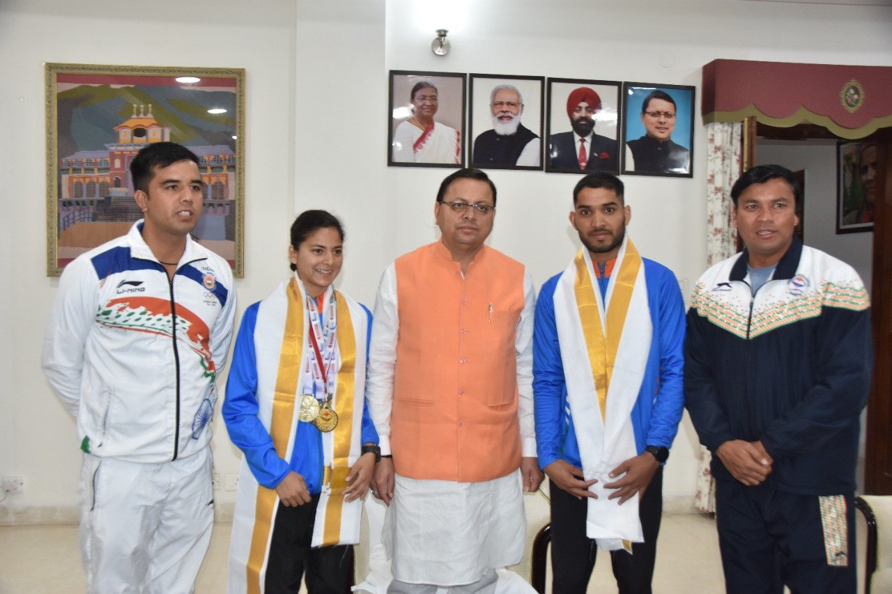 देहरादून : मुख्यमंत्री पुष्कर सिंह धामी से मंगलवार को मुख्यमंत्री आवास में 37वें नेशनल जूनियर एथलेटिक्स चैंपियनशिप की 10 कि.मी. रेस वाक में नेशनल रिकॉर्ड के साथ स्वर्ण पदक जीतने वाली मानसी नेगी और एथलीट सूरज पंवार ने भेंट की। मुख्यमंत्री ने दोनों एथिलीट को एक-एक लाख रूपये की धनराशि देने की घोषणा की। खेल विभाग की नियमावली के मानकों के अनुसार पदक जीतने पर जो धनराशि दी जाती है, इन दोंनों खिलाड़ियों को वह धनराशि भी दी जायेगी। मुख्यमंत्री ने दोनों एथलीट को आगामी खेलों की शुभकामनाएं देते हुए कहा कि आगे भी राज्य सरकार द्वारा ऐसे प्रतिभावान खिलाड़ियों को हर संभव मदद दी जायेगी। मुख्यमंत्री ने दोनों एथलीट के उज्ज्वल भविष्य की कामना की है। इस अवसर पर उप क्रीडा अधिकारी एवं इन दोनों खिलाड़ियों के कोच अनूप बिष्ट एवं एथलीट मनीष बिष्ट मौजूद थे।