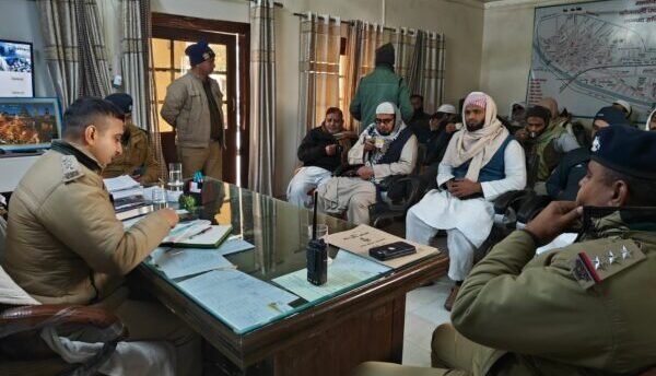 ज्वालापुर : कोतवाली परिसर में सीओ ज्वालापुर द्वारा ली गई मुस्लिम धर्म गुरुओं की गोष्ठी । धार्मिक सद्भाव बनाने के लिए हुई परिचर्चा, नशे पर लगाम लगाने के लिए भी हुआ मंथन । धर्म गुरुओं से अफवाहों को रोकने की अपील, दिए आवश्यक दिशा-निर्देश । कोतवाली ज्वालापुर परिसर पर आज 20 जनवरी 2024 को सीओ ज्वालापुर शांतनु पराशर की अध्यक्षता व कोतवाली ज्वालापुर के अन्य अधिकारियों की मौजूदगी में श्री राम मंदिर विग्रह स्थापना दिवस को लेकर कोतवाली क्षेत्र के समस्त मस्जिदों के इमाम व मुस्लिम धर्म गुरुओं की गोष्टी ली गई। उक्त गोष्ठी में समस्त धर्म गुरुओं व मस्जिदों के इमाम से उक्त दिनांक को शांति व्यवस्था कायम रखने हेतु हिदायत की गई तथा नशे के बढ़ते दुष्प्रभाव पर भी चर्चा की गई। गोष्ठी में मौजूद समस्त व्यक्तियों द्वारा क्षेत्र में शांति व्यवस्था बनाए रखने हेतु पूर्ण सहयोग देने का आश्वासन दिया गया।