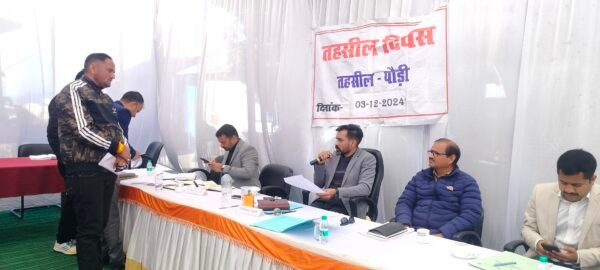 जिलाधिकारी ने कहा कि छोटी-छोटी शिकायतों का संबंधित विभागीय अधिकारी अपने स्तर से उनका निस्तारण करें। जिससे लोगों को मुख्यालय के चक्कर नहीं काटने पड़ेंगे। उन्होंने यह भी कहा कि तहसील दिवस में जो शिकायतें दर्ज हुई हैं उनका तत्काल निस्तारण करते हुए आख्या प्रस्तुत करना सुनिश्चित करे। तहसील दिवस में डीएफओ गढ़वाल स्वप्निल अनिरूद्व, संयुक्त मजिस्ट्रेट दीपक रामचंद्र शेट, जिला विकास अधिकारी मनविंदर कौर, मुख्य कृषि अधिकारी विकेश कुमार यादव, अधिशासी अभियंता लोनिवि दिनेश बिजल्वाण, अधिशासी अभियंता जल संस्थान एस.के. रॉय, जिला सैनिक कल्याण अधिकारी करन सिंह रावत, जिला उद्यान अधिकारी राजेश तिवारी, जिला पूर्ति अधिकारी अरुण वर्मा, जिला पर्यटन अधिकारी खुशाल नेगी, तहसीलदार दीवान सिंह राणा सहित विभिन्न विभागों के अधिकारी उपस्थित थे।