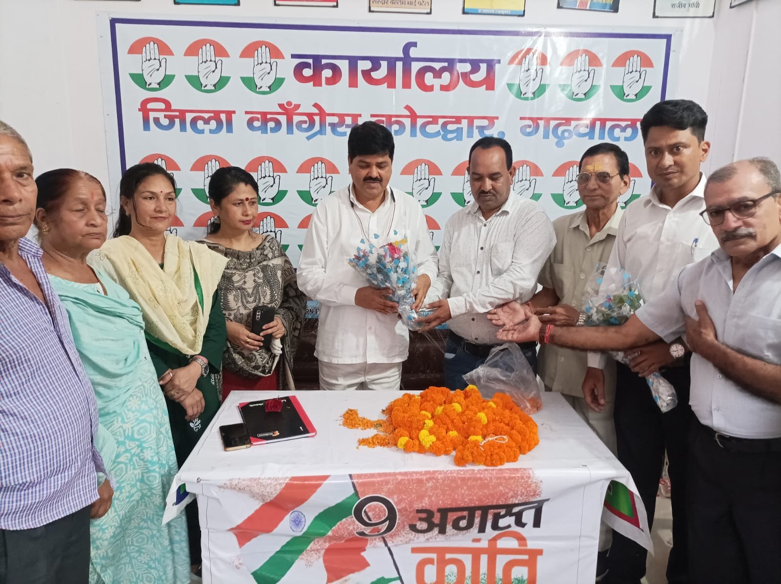 कोटद्वार । कांग्रेस पार्टी के पूर्व प्रदेश अध्यक्ष एवं नव नियुक्त अखिल भारतीय कांग्रेस वर्किंग कमेटी के सदस्य गणेश गोदियाल सोमवार देर सायं अपने गृह क्षेत्र जाते वक्त पहली बार कोटद्वार जिला कांग्रेस कार्यालय में अल्पकालिक सूचना के बाद पहुंचे। कार्यकर्ताओं ने उनका कांग्रेस वर्किंग कमेटी के सदस्य चुने जाने एवं प्रथम बार जिला कार्यालय आगमन पर गर्मजोशी से स्वागत किया। इस अवसर पर उन्होंने कार्यकर्ताओं का हौंसला अफजाई के साथ कहा कि वर्तमान डबल इंजन की सरकार पूरी तरह से असफल हो चुकी है। वर्तमान में महिला सुरक्षा, रोजगार, मंहगाई से जनता त्रस्त है, वहीं युवा विरोधी केंद्र सरकार ने अग्निवीर योजना सैन्य बाहुल्य उत्तराखंड राज्य को रोजगार हीन बनाने का काम किया है। इसलिए अब हम सबकी जिम्मेदारी है कि जनविरोधी भाजपा सरकार को हम सब पूरी शक्ति के साथ सत्ता मुक्त करें। अल्पकालिक स्वागत कार्यक्रम में जिलाध्यक्ष विनोद डबराल, विजय नारायन सिंह, डा0 चंद्रमोहन खर्कवाल, रश्मि पटवाल, रंजना रावत, सुधा असवाल, प्रवेश रावत, अनिल रावत, पार्षद नईम अहमद, मो0 स्वाले, शंकर सिंह नेगी, जितेंद्र भाटिया, कृपाल सिंह, अमितराज सिंह, सुरेन्द्र सिंह गुसाईं, बिमल बिष्ट, सन्दिप रावत, अनिल चौधरी, मो0 इलियास, मो.अनस, राजा आर्य, धीरेंद्र सिंह, बृज मोहन नेगी, नरेंद्र कुमार आदि सम्मिलित थे।