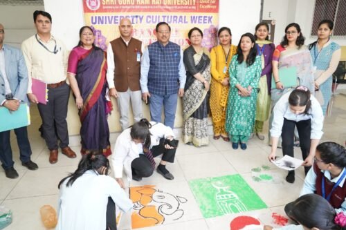 देहरादून। श्री गुरु राम राय विश्वविद्यालय में 27 से 31 मार्च तक सांस्कृतिक सप्ताह का भव्य आयोजन किया जा रहा है। सांस्कृतिक सप्ताह में विद्यार्थियों के लिए विभिन्न प्रतियोगिताएं आयोजित की जाएंगी। इनमें रंगोली, पोस्टर मेकिंग, क्विज, वाद-विवाद, नृत्य एवं गीत प्रतियोगिताएं शामिल हैं। कार्यशाला के अवसर पर विश्वविद्यालय के कुलाधिपति महंत देवेंद्र दास जी महाराज ने कार्यशाला के सफल आयोजन के लिए आयोजकों को शुभकामनाएं प्रेषित की। सांस्कृतिक सप्ताह के प्रथम दिन सोमवार को विश्वविद्यालय में रंगोली और पोस्टर प्रतियोगिता का आयोजन किया गया। इस अवसर पर विश्वविद्यालय के कुलपति डॉ यूएस रावत द्वारा दीप प्रज्जवलित कर कार्यक्रम की शुरुआत की गई। कुलपति ने विद्यार्थियों में अपनी कलात्मकता और सृजन प्रतिभा को उभारने के लिए जरूरी टिप्स भी दिए।