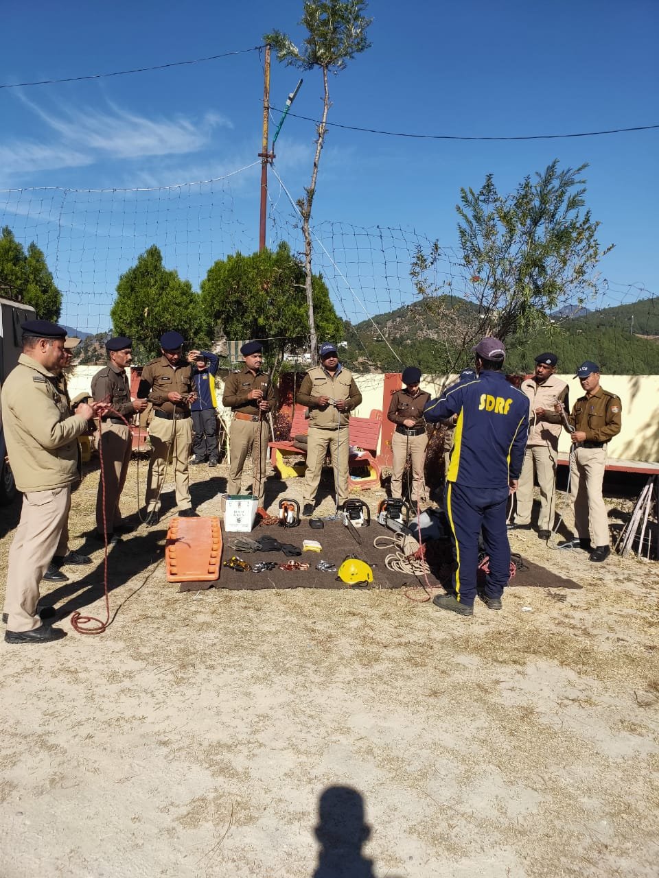 धुमाकोट/पौड़ी : एस.डी.आर.एफ. टीम द्वारा पुलिस कार्मिकों को दी गयी रेस्क्यू ऑपरेशन के सम्बन्ध में जानकारी। वरिष्ठ पुलिस अधीक्षक जनपद पौड़ी गढ़वाल श्वेता चौबे द्वारा जनपद के समस्त थाना प्रभारियों को अपने-अपने थाना क्षेत्रान्तर्गत होने वाली किसी भी आपदा/दुर्घटना सम्बन्धी घटना घटित होने पर तत्काल कार्यवाही करने हेतु एस.डी.आर.एफ टीम से समन्वय स्थापित कर राहत एवं बचाव उपकरणों के सम्बन्ध में प्रशिक्षण लेने हेतु निर्देशित किया गया है। जिसके क्रम में आज 20 नवम्बर 2022 को SDRF टीम द्वारा मय राहत एवं बचाव उपकरणों सहित थाना प्रांगण धुमाकोट में पुलिस कार्मिकों को किसी अप्रिय घटना घटित होने पर किए जाने वाले रेस्क्यू ऑपरेशन के सम्बन्ध में विस्तारपूर्वक बताकर उपकरणों के संबंध में जानकारी दी गई। जिसमे प्राथमिक उपचार देना, घायलों की देखभाल करना, रॉक क्लाइबिंग, रेपलिंग, रिवर क्रोसिंग, घायल व्यक्तियों को ऊंचाई वाले स्थानों से सुरक्षित निकलना, भूकम्प आने पर क्या करें, घायलों को किसी क्षतिग्रस्त भवन से सुरक्षित बाहर निकलने के साथ-साथ ही राहत एवं बचाव के दौरान प्रयोग किये जाने वाले उपकरणों की जानकारी दी गयी।