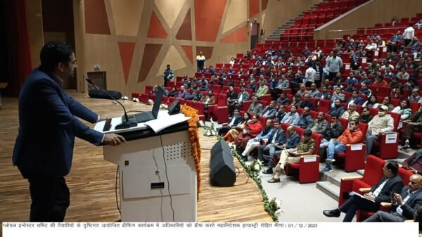 देहरादून : जनपद में 08 एवं 09 दिसम्बर 2023 को प्रस्तावित ग्लोबल इन्वेस्टर समिट की तैयारियों के दृष्टिगत हिमालयन सांस्कृतिक केन्द्र( (ऑडिटोरियम) निम्बूवाला में आयोजित ब्रीफिंग कार्यक्रम में महानिदेशक इण्डस्ट्री रोहित मीणा ने इन्वेस्टर समिट के दौरान अतिथि गणों के साथ ड्यूटी पर लगाये जा रहे लाईजन अधिकारियों को उनके कार्य एवं दायित्व समझाते हुए उनकी शंका/समस्याओं का भी समाधान किया। इस दौरान उन्होंने नामित सभी लाईजन अधिकारियों को उनके दायित्व समझाते हुए कहा कि नामित सभी अधिकारी अपने-अपने रूट प्लान, सीटिंग व्यवस्थाएं देख लें। उन्होंने कहा कि नामित लाईजन अधिकारी उत्तराखण्ड राज्य की जानकारी तथा राज्य की उद्योग नीति के सम्बन्ध में मूलभूत जानकारी अपने पास रख लें तथा इन्वेस्टर्स समिट में आने वाले इन्वेस्टर्स यदि राज्य एवं इन्वेस्टर्स समिट के सम्बन्ध में कोई जानकारी लेना चाहे तो उन्हे दी जा सके। यदि किसी इन्वेस्टर्स को राज्य उद्योग के सम्बन्ध में किसी प्रकार की जानकारी लेनी हो इसके लिए उद्योग की वेबसाईट की जानकारी दी जाए जिसमें सम्पूर्ण विवरण है। इस अवसर पर नामित लाईजन अधिकारी उपस्थित रहे।
