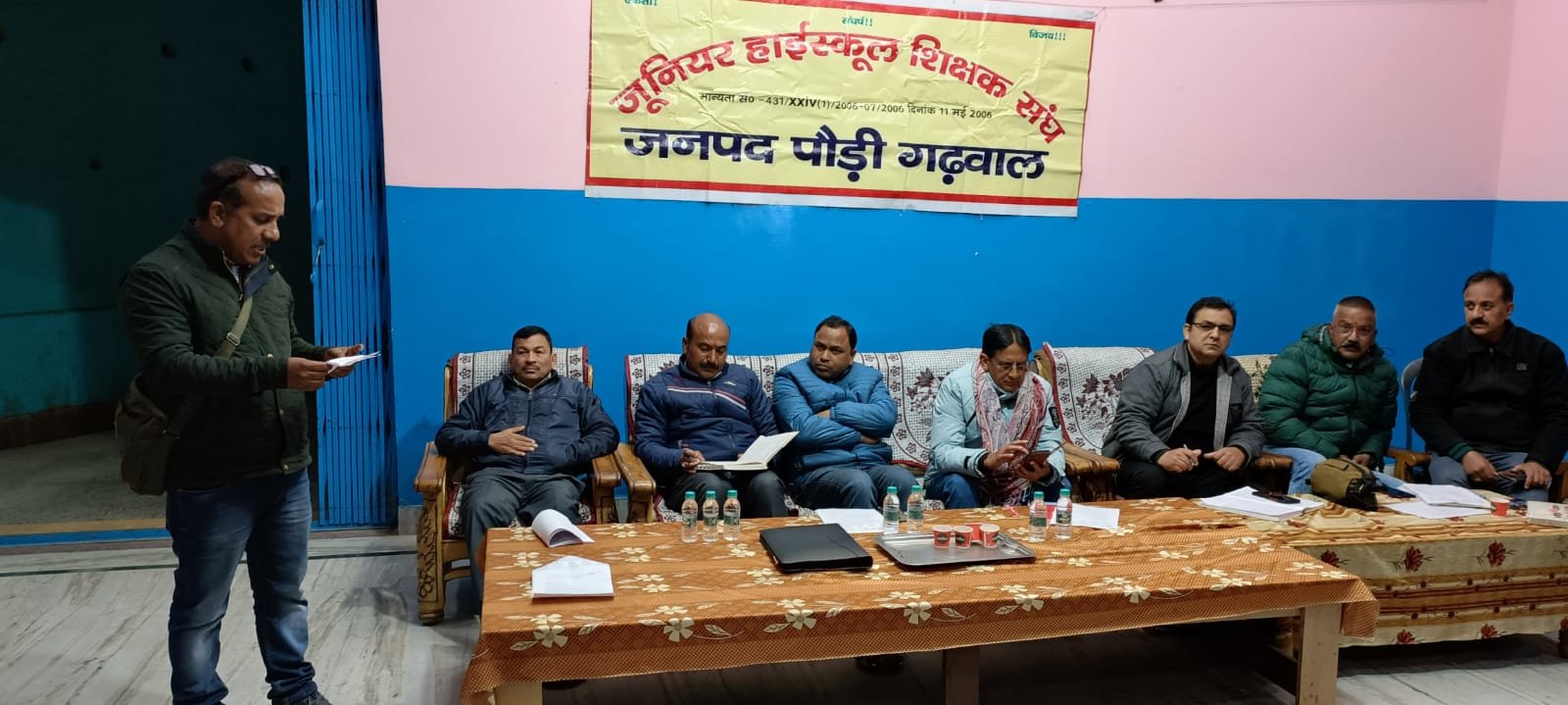 सतपुली । पौड़ी जिले के केन्द्र बिन्दु सतपुली स्थित चौहान लॉज में जूनियर हाईस्कूल शिक्षक संगठन के जिला कार्यकारिणी की त्रैमासिक बैठक का आयोजन किया गया । बैठक में प्रांतीय पदाधिकारियों सहित जनपद के पन्द्रह विकासखंड के सदस्यों ने प्रतिभाग किया । बैठक में वेतन विसंगति, नई शिक्षा नीति के अंतर्गत त्रिस्तरीय व्यवस्था लागू करने, आयकर नोटिस सहित 12 मुद्दों पर चर्चा की गयी । साथ ही सरकार द्वारा संज्ञान न लेने पर आंदोलन के लिए बाध्य होने का निर्णय लिया गया । बैठक में एकेश्वर के शिक्षक चंद्रमोहन सिंह रावत व जिला मंत्री मुकेश काला के भतीजे 27 वर्षीय अभिषेक काला के आकस्मिक निधन पर शोक व्यक्त किया गया । बैठक में प्रांतीय अध्यक्ष कुंवर राणा, उपाध्यक्ष दीवान सिंह रावत, विक्रम सिंह रावत, जिलाध्यक्ष भगत सिंह भंडारी, जिला मंत्री मुकेश काला, उपाध्यक्ष भोपाल सिंह रावत, कोषाध्यक्ष पवन देवलियाल, संयुक्त मंत्री विपिन रावत, ब्लॉक अध्यक्ष लक्ष्मण सिंह रावत सहित अनेक लोग मौजूद रहे ।