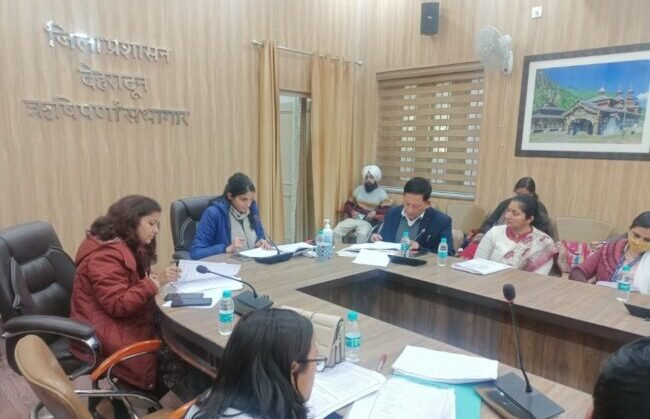 देहरादून : जिलाधिकारी सोनिका की अध्यक्षता में ऋषिपर्णा सभागार कलेक्ट्रेट में जिला स्तरीय सलाहकार समिति की बैठक आयोजित की गई। बैठक में वार्षिक ऋण योजना 2022-23 के अन्तर्गत त्रैमास सिंतबर 2022 तक प्रधानमंत्री जनधन योजना, प्रधानमंत्री सुरक्षा बीमा योजना, प्रधानमंत्री जीवन ज्योति बीमा योजना, अटल पेशंन योजना, किसान क्रेडिट कार्ड योजना, प्रधानमंत्री कृषि बीमा योजना, प्रधानमंत्री रोजगार सृजन योजना, मुख्यमंत्री स्वरोजगार योजना, शासकीय प्रायोजित योजनाओं, ग्राम स्वरोजगार प्रशिक्षण, राष्ट्रीय ग्रामीण आजीविका, राष्ट्रीय शहरी आजीविका, प्रधानमंत्री स्वनिधि योजना आदि योजनाओं की प्रगति की समीक्षा की गई। इस अवसर पर नाबार्ड की स्मारिका “संभाव्यतायुक्त ऋण योजना 2023-24” का विमोचन किया गया।