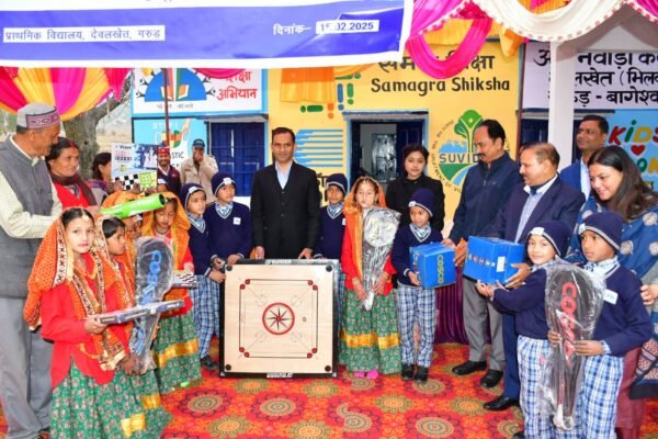 बागेश्वर : जिलाधिकारी आशीष भटगांई ने विकास खंड गरुड़ के राजकीय प्राथमिक विद्यालय देवलखेत में कॉनकॉर एवं सुविधा के सहयोग से स्मार्ट क्लास,वाल पेंटिंग व शौचालय नवीनीकरण कार्यो का रिवन काटकर लोकार्पण किया। इस दौरान बच्चों द्वारा रंगारग कार्यक्रम प्रस्तुत किए। जिलाधिकारी ने स्मार्ट क्लास का निरीक्षण किया व बच्चों को खेल सामग्री वितरित की।