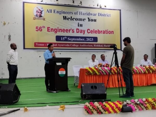 हरिद्वार: जिलाधिकारी धीराज सिंह गर्ब्याल ने शुक्रवार को भारत रत्न सर एम0 विश्वेश्वरैया के जन्म दिवस के अवसर पर हरिद्वार के इंजीनियरों द्वारा ऋषिकुल कॉलेज के आडिटोरियम में आयोजित इंजीनियर्स डे कार्यक्रम में मुख्य अतिथि के रूप में प्रतिभाग किया। जिलाधिकारी ने सर एम0 विश्वेश्वरैया के जन्म दिवस के अवसर पर आयोजित किये जाने वाले इंजीनियर्स डे की सभी को हार्दिक बधाई एवं शुभकामनायें दी तथा देश व प्रदेश के विकास में इंजीनियरों की महती भूमिका पर विस्तृत प्रकाश डाला।