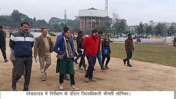 देहरादून : जिलाधिकारी सोनिका ने आज परेड ग्राउण्ड का स्थलीय निरीक्षण करते हुए गणतंत्र दिवस की तैयारियों का जायजा लिया। जिलाधिकारी ने स्मार्ट सिटी लि0 एवं कार्यदायी संस्थाओं के अधिकारियों का निर्देशित किया कि परेडग्राउण्ड में संचालित सभी निर्माण कार्याें को युद्धस्तर पर पूर्ण करें, ताकि गणतंत्र दिवस के अवसर पर आयोजित कार्यक्रम निर्बाद रूप से संपादित हो सके। उन्होंने लोनिवि के अधिकारियों को मंच, टैंट, बैरिंकेटिंग, बैठने की व्यवस्था आदि के साथ ही विद्युत विभाग को निर्बाद विद्युत व्यवस्था, पेयजल निगम पेयजल आदि व्यवस्थाएं बनाने के निर्देश दिए। उन्होंने नगर निगम को शहर तथा आयोजन स्थल परेड ग्राउण्ड पर सफाई व्यवस्था बनाने के निर्देश दिए। इस अवसर पर अपर मुख्य नगर अधिकारी नगर निगम जगदीश लाल, मुख्य व्यैक्तिक सहायक वीरेन्द्र सिंह सहित स्मार्ट सिटी लि0, के सीजीएम जगमोहन चौहान, गिरीश पुण्डीर, लोनिवि एवं नगर निगम के अधिकारी उपस्थित रहे।