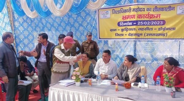 देहरादून : जिलाधिकारी सोनिका ने आज ग्राम  कुड़ियाल (थानो) में भ्रमण के प्राथमिक विद्यालय कुड़ियाल में जनमानस की समस्याओं को सुना। इस दौरान 29 शिकायतें प्राप्त हुई, जिनमें अधिकतर शिकायतों का मौके पर ही निस्तारण किया गया। ग्रामवासियों ने जिलाधिकारी ने उनके गांव में आने पर आभार व्यक्त किया तथा मांगल गीत से जिलाधिकारी का स्वागत किया। क्षेत्रवासियों की राजकीय प्राथमिक विद्यालय कुडियाल से प्रकाशपंत मार्ग तक 800 मीटर सड़क निर्माण हेतु वन क्षेत्र में स्वीकृति की मांग पर जिलाधिकारी ने स्वीकृत शासनादेश से अवगत कराने पर क्षेत्रवासियों ने राज्य सरकार एवं जिलाधिकारी का आभार व्यक्त किया। जिलाधिकारी ने उपस्थित अधिकारियों कों निर्देशित किया भ्रमण कार्यक्रम जो शिकायतें प्राप्त हुई है। उन पर संज्ञान लेते हुए सम्बन्धित विभाग अपनी-अपनी शिकायतों का समयबद्धता से निस्तारण करते हुए निस्तारण आख्या प्रस्तुत करें। प्राप्त शिकायतों में राजस्व, विद्युत, समाज कल्याण, बाल विकास, नलकूप खण्ड, सिंचाई, लघु सिंचाई, विद्युत, स्वास्थ्य, परिवहन, वन, दूरसंचार निगम लि0, पर्यटन,लोनिवि,जल संस्थान, पेयजल निगम आदि विभागों से सम्बन्धित प्राप्त हुई।