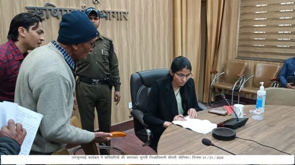 जिलाधिकारी ने अजबपुर में खेती हेतु पानी न मिलने की शिकायत को गंभीरता से लेते हुए एक सप्ताह के भीतर पानी पंहुचाने के निर्देश सिंचाई विभाग को दिए। भाऊवाला में ग्राम समाज की भूमि पर कब्जा करने की शिकायत पर उप जिलाधिकारी विकास नगर को मौका मुआवना कराते हुए त्वरित कार्रवाई के निर्देश दिए। जनसुनवाई में 72 वर्षीय बुजुर्ग शिकायतकर्ता द्वारा शिकायत की गई कि रेस्ट कैंप निवासी है अपनी भूमि सीमांकन हेतु 1 वर्ष से धूमरहे हैैंं, जिसको गंभीरता से लेते हुए उन्होंने तहसीलदार सदर सहित सम्बन्धित तहसीलों को निर्देशित किया कि लंबे समय से भूमि का सीमांकन की शिकायतों पर गंभीरता से कार्य करें। तहसीलदार सदर को एक सप्ताह के भीतर कार्यवाही करते हुए अख्या प्रस्तुत करने के निर्देश दिए। साथ ही शिकायत पटल कलेक्ट्रेट को निर्देशित किया कि जो शिकायतें भूमि सीमांकन की प्राप्त हुई है उनका पूर्ण विवरण दें। डोईवाला में एक मृत व्यक्ति को जीवित दर्शाकर संपति खुर्द्ध-बुर्द्व किए जाने की शिकायत पर उप जिलाधिकारी डोईवाला को 15 दिन के भीतर जांच करते हुए रिपोर्ट प्रस्तुत करने के निर्देश दिए।