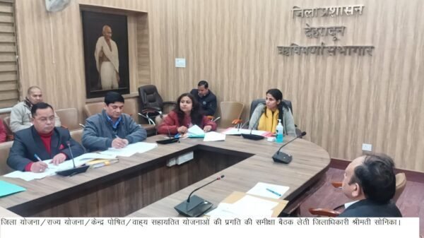 देहरादून : जिलाधिकारी सोनिका की अध्यक्षता में आज ऋषिपर्णा सभागार कलेक्ट्रेट में जिला योजना/राज्य योजना/केन्द्र पोषित/वाह्य सहायतित योजनाओं में विभागों द्वारा की गई प्रगति की समीक्षा की गई। जिला योजना में अवमुक्त धनराशि के सापेक्ष 76.49 प्रतिशत, राज्य सेक्टर में 72.39 प्रतिशत, केन्द्र पोषित योजनाओं में 91.42 प्रतिशत तथा वाह्य सहायतित योजनाओं में 88.26 प्रतिशत धनराशि का व्यय किया गया तथा सभी मदों में अवमुक्त धनराशि के सापेक्ष 81.57 प्रतिशत धनराशि का व्यय किया गया। जिलाधिकारी ने बीस सूत्रीय कार्यक्रम में खाद्य पूर्ति विभाग बी श्रेणी, पीएमजीएसवाई सी श्रेणी तथा जल जीवन मिशन डी श्रेणी में रहने पर नाराजगी व्यक्त करते हुए शीघ्र लक्ष्य पूर्ण कर ए श्रेणी में आने के निर्देश दिए। उन्होंने एलोपैथिक मद में न्यून प्रगति पर नाराजगी व्यक्त करते हुए की तथा मुख्य विकास अधिकारी को पत्रावली के अवलोकन के बाद ही अनुमोदन करने के निर्देश दिए।