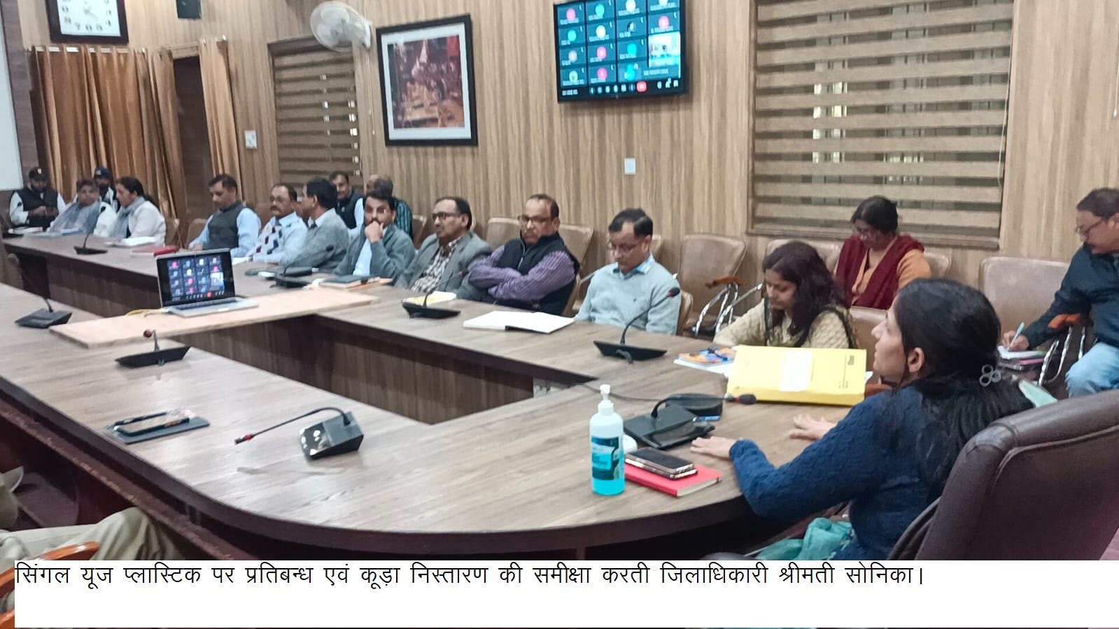 देहरादून : जिलाधिकारी सोनिका ने जनपद में सिंगल यूज प्लास्टिक के प्रतिबन्ध एवं कूड़ा निस्तारण के सम्बन्ध में नगर निगम व नगर पालिका परिषदों के अधिशाय अधिकारियों, एवं सेक्टर मजिस्ट्रेट के साथ समीक्षा बैठक ली। जिसमें नोडल अधिकारियों ने वर्चुअल के माध्यम से प्रतिभाग किया। जिलाधिकारी ने सम्बन्धित अधिकारियों को उच्च न्यायालय द्वारा दिये गये निर्देशों का कडाई से अनुपालन करने के निर्देश दिये। कहा कि जनजागरूकता एवं छापामारी अभियान में किसी भी तरह कि लापरवाही ना हो इस बात को प्राथमिकता से लेना सुनिश्चित करेंगे।