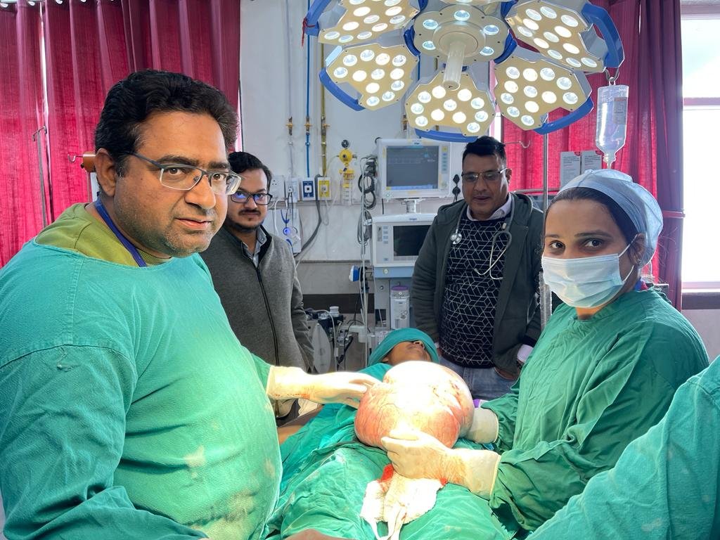 श्रीनगर । डॉ लोकेश सलूजा व डॉ सोनाली शाही के द्वारा मरीज का सफल ऑपरेशन किया गया। एक महिला जिसका नाम कादंबरी, उम्र लगभग 23 वर्ष जिसको पिछले लगभग 1 वर्ष से लगातार पेट फूलने तथा खाना नहीं पचने की समस्या हो रही थी जिसके पश्चात मरीज ने राजकीय जिला चिकित्सालय श्रीनगर में दिखाया तत्पश्चात अल्ट्रासाउंड के माध्यम से मरीज के अंडाशय(ovary)में एक बहुत बड़ी रसौली पाई गई जो लगभग बच्चेदानी से पसलियों तक बताई गई। जिसके बाद मरीज के द्वारा डॉक्टर सोनाली को दिखाया तत्पश्चात मरीज की सभी जांच कराने के बाद भर्ती कराया गया और सफल ऑपरेशन किया गया ऑपरेशन के बाद मरीज़ पूर्ण रूप से स्वस्थ है।मरीज़ की ओवरी को भी सुरक्षित किया गया क्यूंकि मरीज़ अविवाहित हैं । मरीज़ की रसौली की लंबाई लगभग 45 सेंटीमीटर तथा वजन लगभग साढ़े सात किलो के लगभग बताया गया।ऑपरेशन के बाद मरीज के तीमारदारों ने कहा की उप जिला चिकित्सालय श्रीनगर के डॉक्टर लोकेश सलूजा एवं डॉ सोनाली हमारे लिए भगवान से कम नहीं है जिन्होंने इतना बड़ा ऑपरेशन कर हमारे मरीज की जान बचाई वरना हमें अपने मरीज को लेकर शहरों में दरबदर भटकना पड़ता तथा बहुत खर्चा वहन करना पड़ता। टीम में सर्जन डॉक्टर लोकेश सलूजा, गायनेकोलॉजिस्ट डॉ सोनाली शाही, एनएसथेटिस्ट डॉक्टर आनंद सिंह राणा, सर्जन डॉ नितीश कुमार, नर्सिंग ऑफिसर आशा तथा देव सिंह मौजूद रहे।