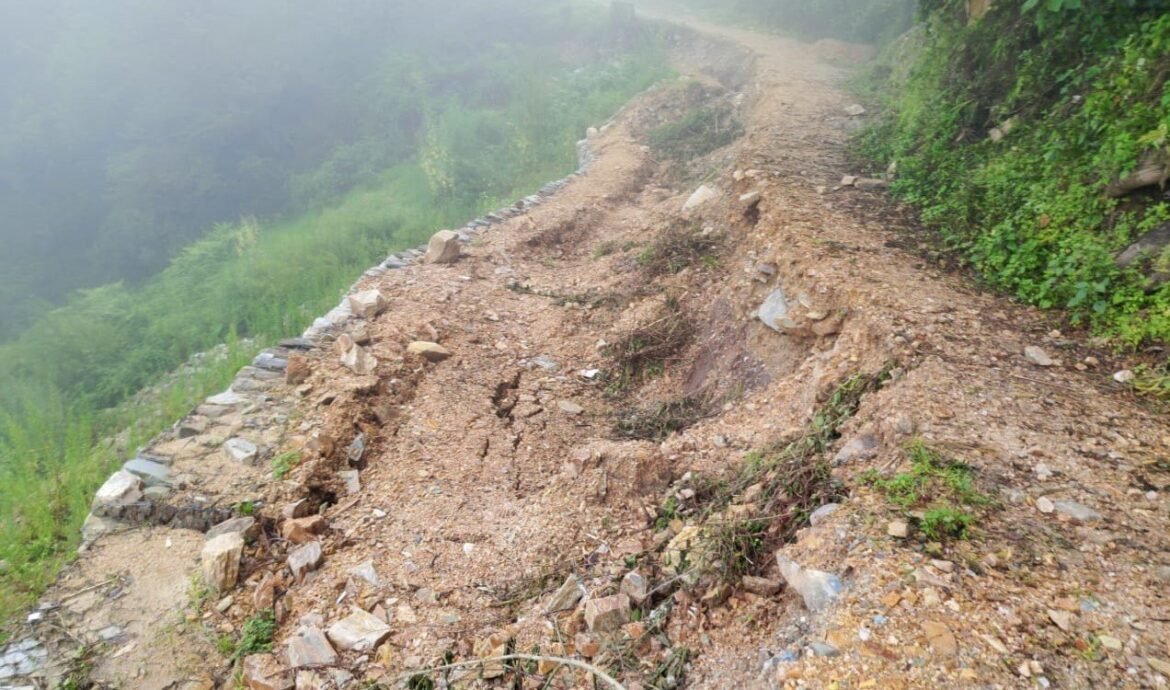 पोखरी (चमोली)। चमोली जिले के पोखरी विकासखंड के गुडम-नैल मोटर मार्ग सिदेली के समीप एक पखवाड़े से 40 मीटर से अधिक सड़क भूधंसाव होने के कारण अवरूद्ध है। जिसके कारण नैल के ग्रामीण सिदेली से चार किलोमीटर पैदल चलने को मजबूर है। ग्रामीण खाद्य सामग्री पीठ पर लाद कर गांव तक पहुंचने के लिए मजबूर है।