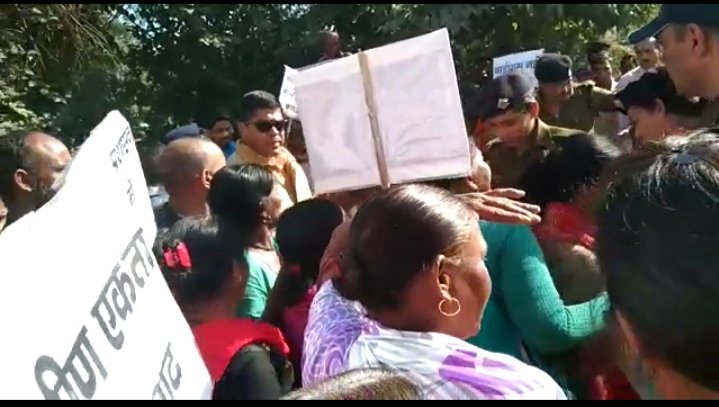 कोटद्वार । नगरनिगम के लालपानी क्षेत्र में स्थित श्री गुरु राम राय पब्लिक स्कूल के आयोजित एक कार्यक्रम में हिस्सा लेने जा रही विधानसभा अध्यक्ष ऋतु खंडूरी का स्थानीय निवासियों ने जमकर विरोध कर नारेबाजी की । बताते चलें कि उत्तराखण्ड के पौड़ी जिले में ऑल वेदर रोड परियोजना के तहत राष्ट्रीय राजमार्ग मेरठ-बुवाखाल 534 पर कोटद्वार में कौड़िया से सिद्धबली मंदिर तक बाईपास प्रस्तावित है, लेकिन ग्रामीण इसका विरोध कर रहे हैं। ग्रामीणों का आरोप है कि सनेह पट्टी के 400 परिवारों की कृषि भूमि और 150 परिवारों के भवनों को हानि पहुंचाकर सीमांकन किया जा रहा है। इसकी जद में उनके पुश्तैनी भवन और खेत आ रहे हैं। किंतु सरकार इनकी अनदेखी कर रही है । विरोध में स्थानीय पार्षद भी मौजूद रहे ।