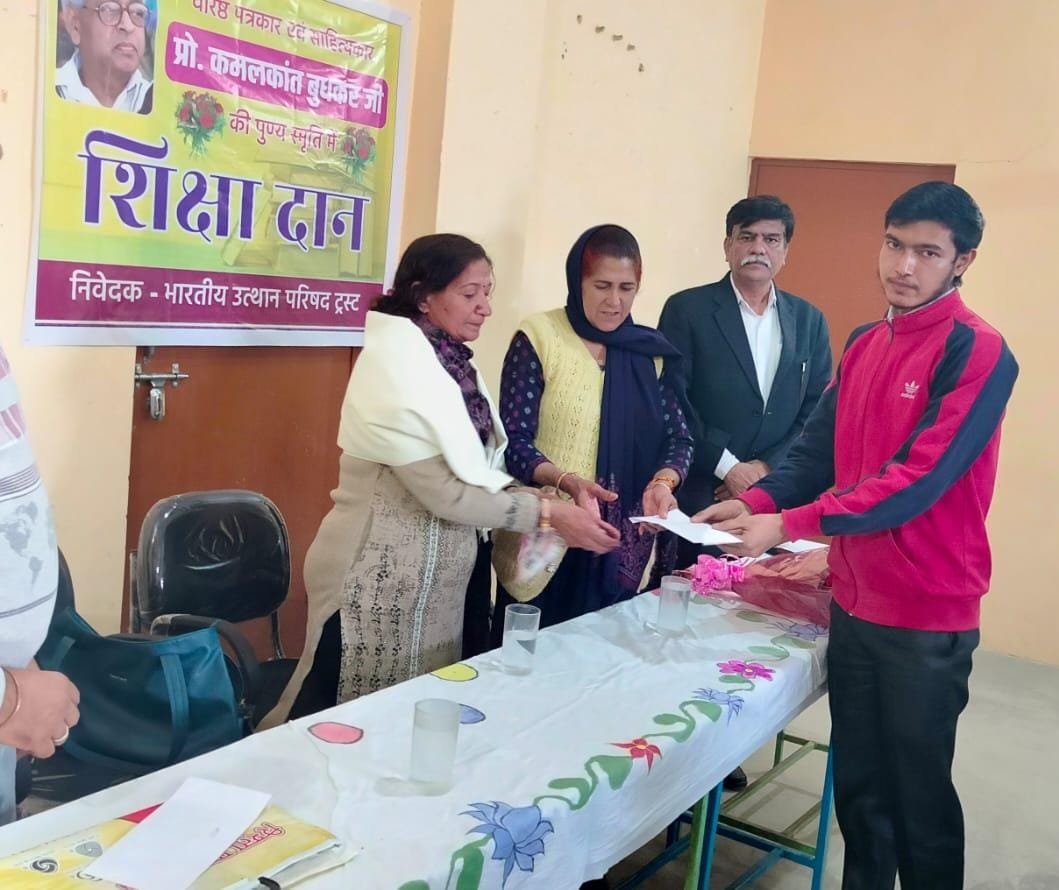 धनौरी । हरिओम सरस्वती पीजी कॉलेज धनौरी में शिक्षा दान कार्यक्रम आयोजित किया गया। जिसमें आठ छात्र- छात्राओं को प्रोफेसर कमलकांत बुधकर स्मृति स्कॉलरशिप प्रदान की गई। ये स्कॉलरशिप प्रोफेसर कमलकांत बुधकर की धर्मपत्नी संगीता बुधकर की ओर से प्रदान की गई। कार्यक्रम को संबोधित करते हुए कॉलेज प्रबंध समिति की अध्यक्ष सुमन देवी ने कहा कि शिक्षा दान से बड़ा कोई दान नहीं है। गुरुकुल कांगड़ी विश्वविद्यालय हरिद्वार में प्रोफेसर रहे डॉ. कमलकांत बुधकर ने जीवन भर छात्र-छात्राओं के जीवन में शिक्षा का उजाला किया। उनकी मृत्यु के बाद उनकी धर्मपत्नी संगीता बुधकर उनके नाम से स्कॉलरशिप प्रदान कर छात्र-छात्राओं को शिक्षा की राह दिखा रही हैं। प्राचार्य डॉ आदित्य गौतम ने कहा कि कमलकांत बुधकर का पूरा जीवन शिक्षा को समर्पित रहा। उनके व्यक्तित्व से कोई भी प्रभावित हुए बिना नहीं रह सकता था। छात्र-छात्राएं उनकी राह पर चलकर आदर्श जीवन व्यतीत कर सकते हैं।