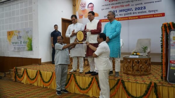 देहरादून : मुख्य सेवक सदन मुख्यमंत्री आवास परिसर में 01 अक्टूबर, 2023 को एक पुरस्कार वितरण समारोह आयोजित किया गया जिसमें मुख्यमंत्री पुष्कर सिंह धामी द्वारा स्वच्छता ही सेवा के अन्तर्गत ओडीएफ प्लस गांव को दिये जाने हेतु सर्वश्रेष्ठ कार्य करने के लिए प्रथम जनपद के रूप में जनपद हरिद्वार और द्वितीय पुरस्कार जनपद टिहरी गढ़वाल को प्रदान किया गया इस क्रम में स्वच्छता ही सेवा के अन्तर्गत सर्वाधिक उत्कृष्ट कार्य किए जाने हेतु प्रथम पुरस्कार देहरादून जनपद को और द्वितीय पुरस्कार जनपद उधमसिंह नगर को प्रदान किया गया। कार्यक्रम में मुख्यमंत्री पुष्कर सिंह धामी द्वारा राज्य में स्वच्छता की सेवा-2023 के अन्तर्गत किये गये कार्यों की सराहना की गयी।