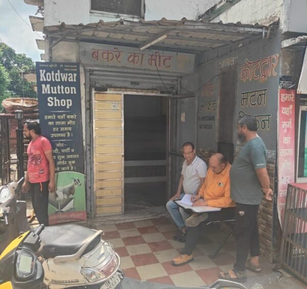 कोटद्वार । नगर निगम कोटद्वार के आम पड़ाव में खाद्य सुरक्षा अधिकारियों ने मीट की दुकानों का औचक निरीक्षण किया तथा निरीक्षण के दौरान मीट व्यापारियों को आवश्यक दिशा निर्देश दिए। उन्होंने निर्देश दिए कि मीट की दुकानों पर सफाई रखी जाए तथा खुले में मीट न रखा जाए। उन्होंने मीट व्यापारियों को नोटिस जारी किए हैं। वरिष्ठ खाघ निरीक्षक संदीप मिश्रा ने अन्य अधिकारियों के साथ आम पड़ाव स्थित मीट की दुकानों व अन्य प्रतिष्ठानों की चैकिंग की। लाईसेंस की भी जांच की। चैकिंग के दौरान मुर्गा, मछली, व मीट विक्रय करने वालों के विरूद्ध नोटिस जारी किए। उन्होंने मीट की बिक्री करने वाले दुकानदारों को सफाई रखने की हिदायत दी तथा लाइसेंसों की शर्तों का पालन करने की चेतावनी दी। उन्होंने मीट विक्रेताओं को दुकान में साफ सफाई रखने तथा खुले में मीट न बेचने की हिदायत भी दी। संदीप मिश्रा ने बताया कि लोगों की शिकायत पर आम पड़ाव स्थित मीट सहित कई अन्य प्रतिष्ठानों का औचक निरीक्षण किया गया है । कमी पाए जाने पर दुकानदारों को नोटिस जारी किए गए हैं आगे भी निरंतर चेकिंग अभियान जारी रहेगा ।